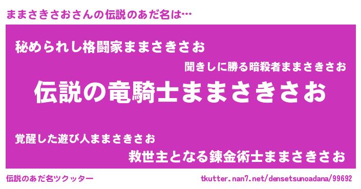 | 料理風あだ名 | 『ままさきさおごはん』 |