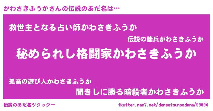 | 意味不明あだ名 | 『自称かわさきふうか』 |