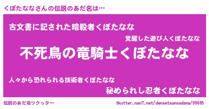 | 女子向けラノベタイトル風あだ名 | 『くぼたなな姫と円卓の騎士』 |
