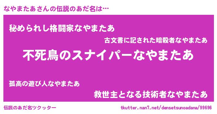 | 意味不明あだ名 | 『住所不定無職なやまたあ(95歳)』 |