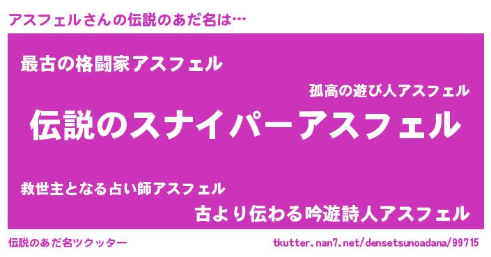 | 男性向けラノベタイトル風あだ名 | 『アスフェルの憂鬱』 |