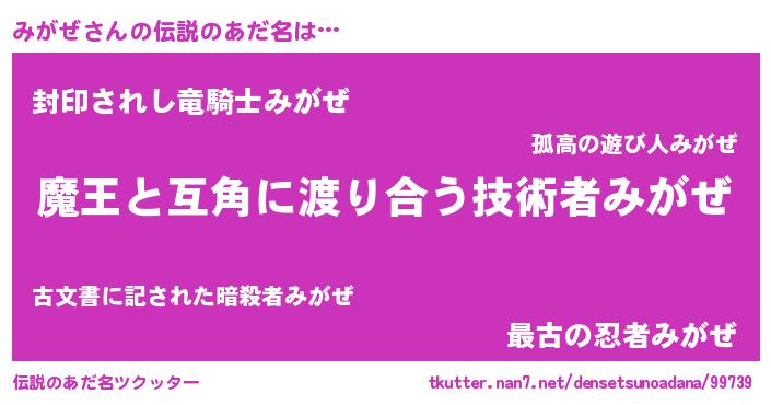 | ヒーロー風カッコイイあだ名 | 『愛の使者みがぜ』『スーパーミガゼ』 |