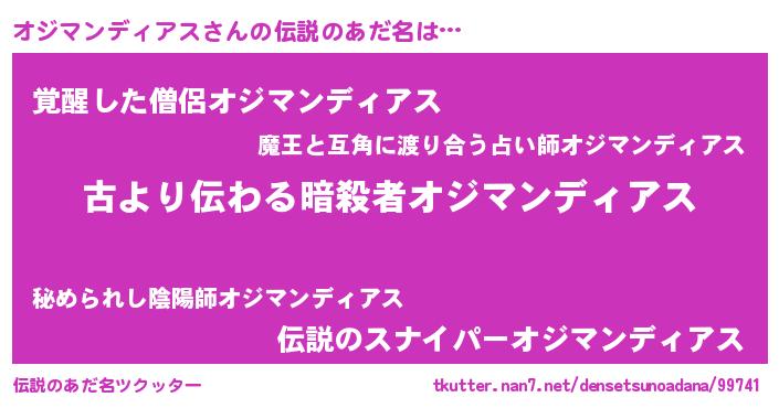 | 胡散臭い通販商品みたいなあだ名 | 『来世でも幸せになれる健康食品…その名も「オジマンディアス」』 |