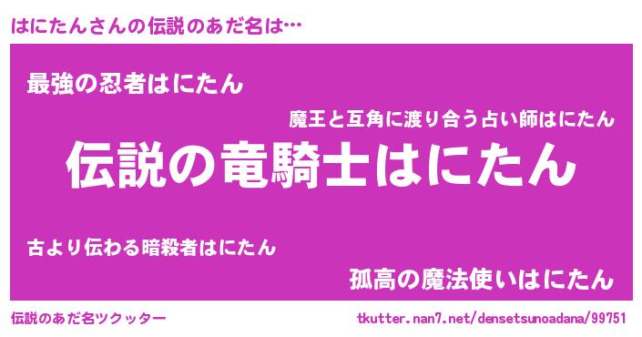 | ヒーロー風カッコイイあだ名 | 『スーパーハニタン』『最強戦士ハニタン』 |