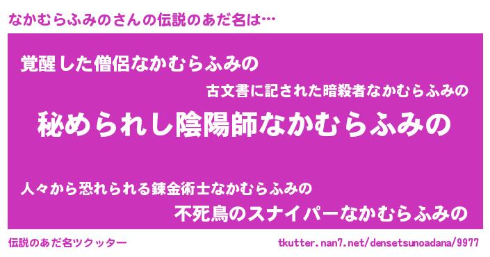 | 意味不明あだ名 | 『なかむらふみのフォーエバー』 |