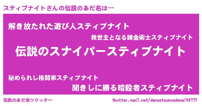| 意味不明あだ名 | 『自称スティブナイト』 |