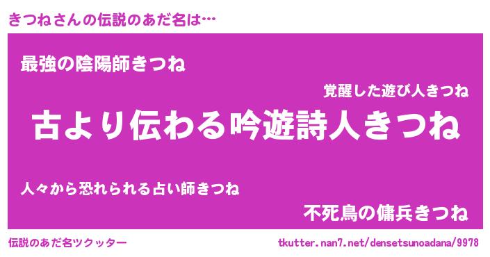 | 意味不明あだ名 | 『自称きつね』『永久保存きつね』 |