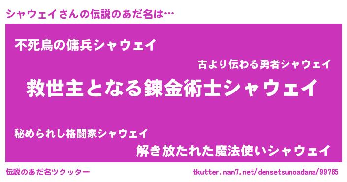 | 男性向けラノベタイトル風あだ名 | 『うちのシャウェイが世界を掌握している!』 |