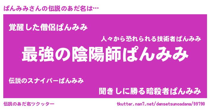 | ヒーロー風カッコイイあだ名 | 『ウルトラぱんみみマン』『幻影騎士パン』 |