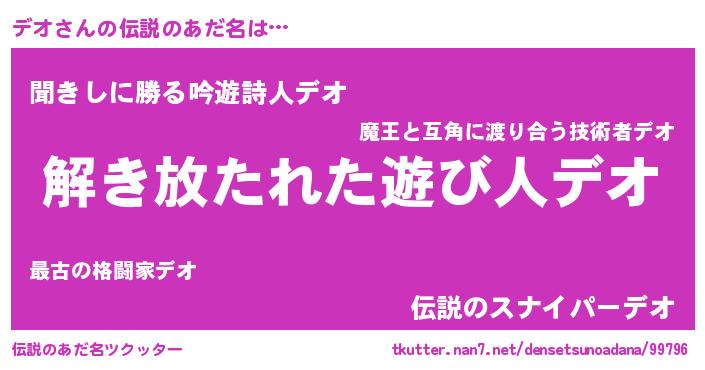 | ファンタジー風あだ名 | 『ファントムデオス』『デオディッシュ』 |