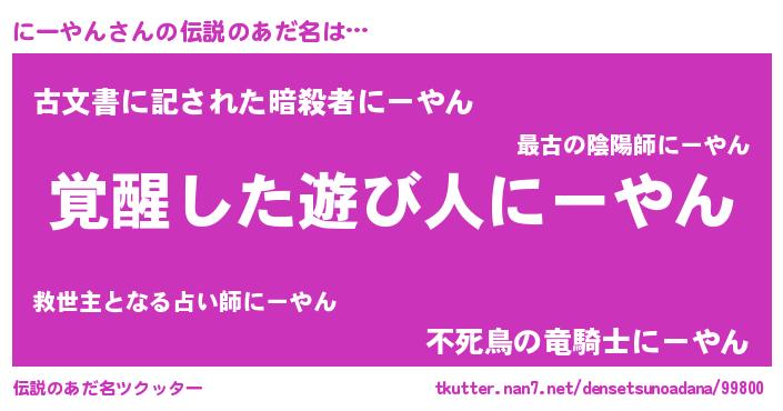 | ヒーロー風カッコイイあだ名 | 『炎刃騎士ニー』『超時空戦士ニーヤン』 |