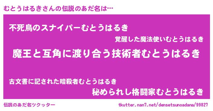 | ヒーロー風カッコイイあだ名 | 『愛の使者むとうはるき』『仮面ムトダー』 |