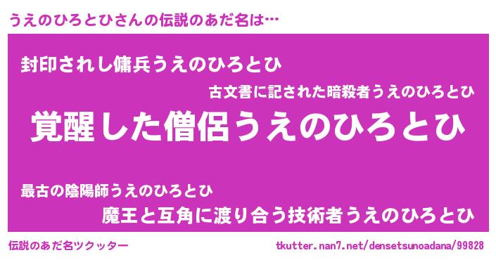 | ヒーロー風カッコイイあだ名 | 『究極戦士ウエノヒロトヒ』 |