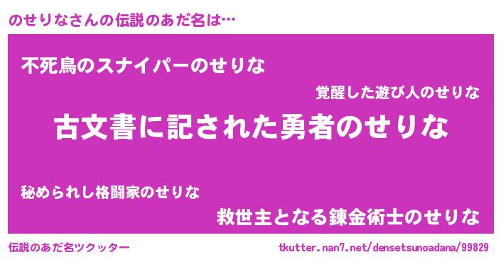 | 意味不明あだ名 | 『住所不定無職のせりな(91歳)』 |