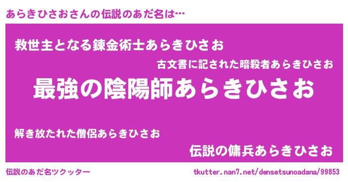 | ファンタジー風あだ名 | 『エターナルアラキヒサオー』 |