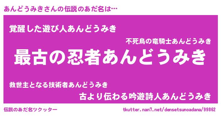 | 意味不明あだ名 | 『あんどうみきフォーエバー』 |