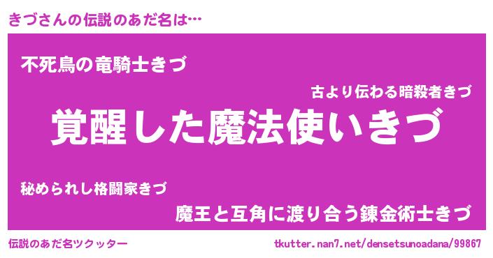 | ヒーロー風カッコイイあだ名 | 『炎刃騎士キヅ』『仮面キヅダー』 |