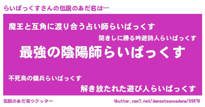 | ファンタジー風あだ名 | 『エターナルライバックスー』 |