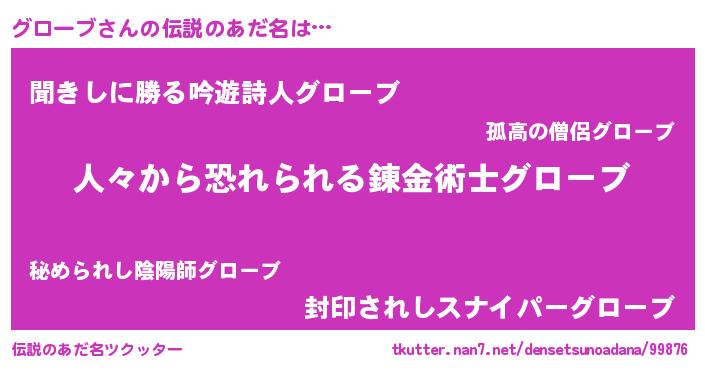 | ヒーロー風カッコイイあだ名 | 『超時空戦士グローブ』『ネオグローブ』 |
