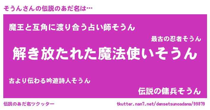 | ヒーロー風カッコイイあだ名 | 『幻影騎士ソウ』『天空の使者そうん』 |