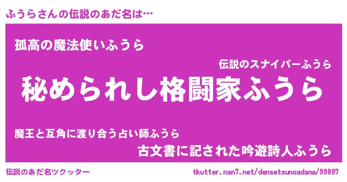 | ヒーロー風カッコイイあだ名 | 『ウルトラふうらマン』『黄金騎士フウ』 |