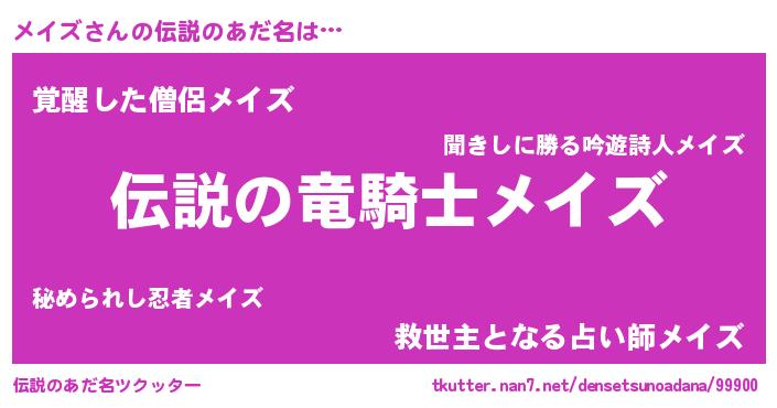 | 意味不明あだ名 | 『自称メイズ』『住所不定無職メイズ(95歳)』 |