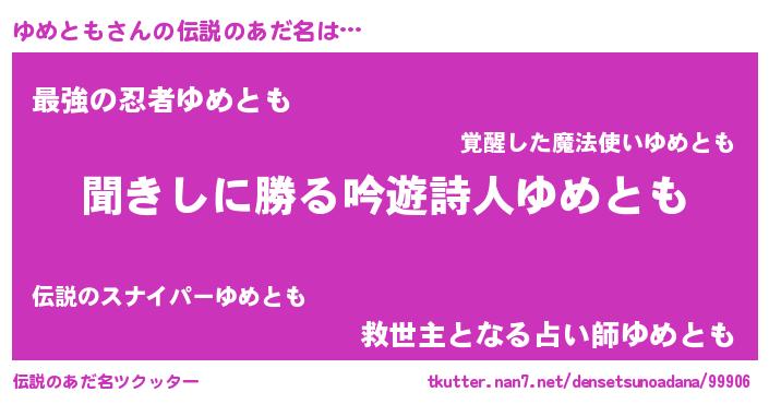 | ヒーロー風カッコイイあだ名 | 『ネオユメトモ』『仮面ユメダー』 |