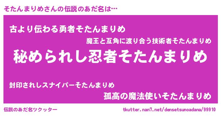 | 男性向けラノベタイトル風あだ名 | 『ソタンマリメスレイヤー』 |