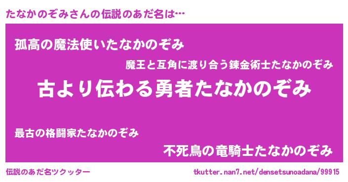 | 意味不明あだ名 | 『住所不定無職たなかのぞみ(93歳)』 |