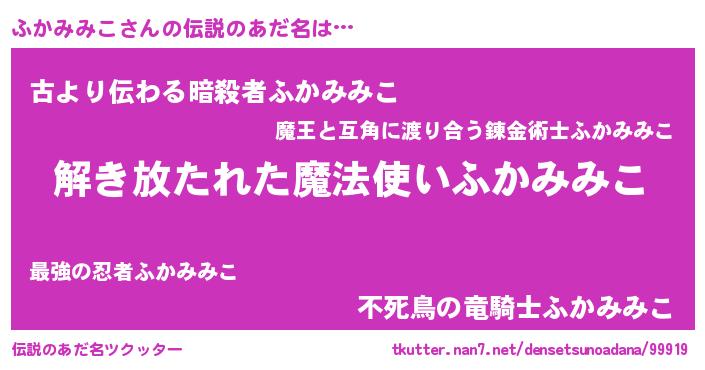 | 主人公(ふかみみこ)のあだ名『 ふかぴょん』 |
