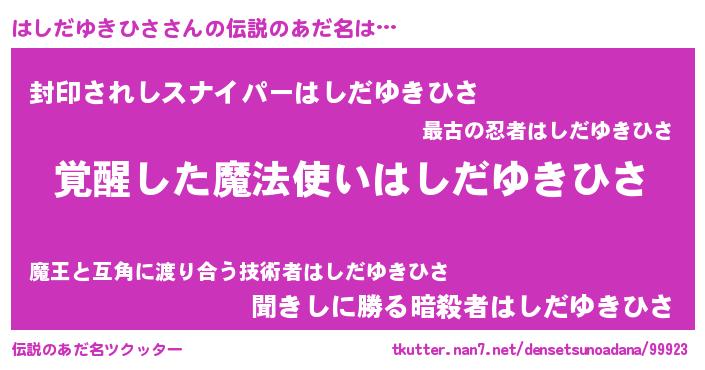 | 男性向けラノベタイトル風あだ名 | 『はしだゆきひさの嫁は女の子じゃないと思った?』 |