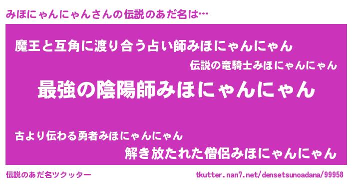 | ファンタジー風あだ名 | 『エターナルミホニャンニャンー』 |