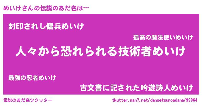 | ヒーロー風カッコイイあだ名 | 『正義の使者めいけ』『スーパーメイケ』 |