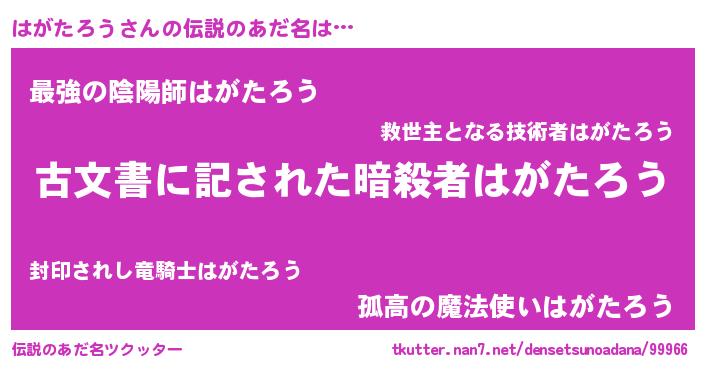 | 意味不明あだ名 | 『永久保存はがたろう』『自称はがたろう』 |