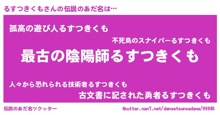 | 意味不明あだ名 | 『自称るすつきくも』 |