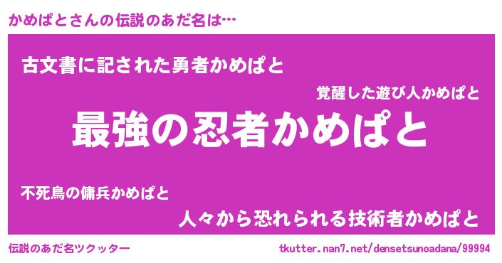 | 意味不明あだ名 | 『自称かめぱと』『かめぱとフォーエバー』 |
