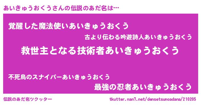 | ピコ太郎風あだ名 | 『アア太郎』『アイ太郎』『ピア八郎』 |