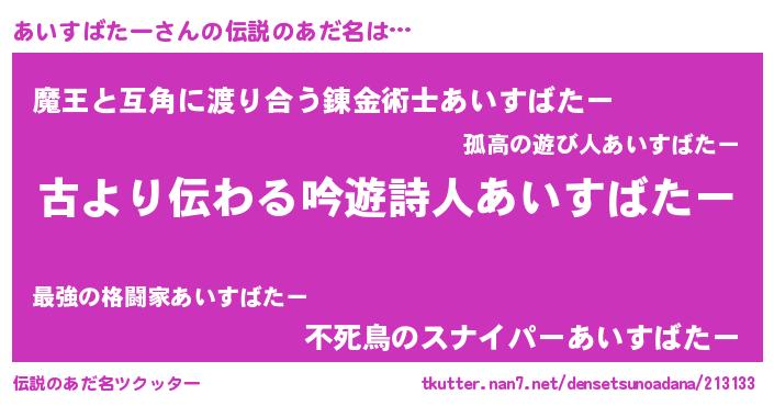 | ヘコむあだ名 | 『あいすばたー(小並感)』『あいっふぃ~』 |