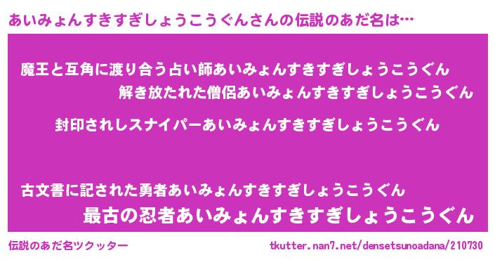 | 欧米人風あだ名 | 『ダレノガレあいみょんすきすぎしょうこうぐん』 |
