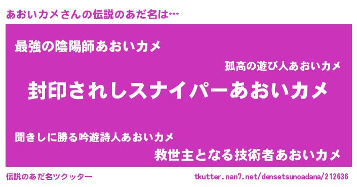 | 男性向けラノベタイトル風あだ名 | 『アオイカメアートオンライン』 |