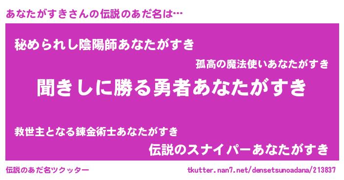 | ヒーロー風カッコイイあだ名 | 『ネオアナタガスキ』『幻影騎士アナ』 |