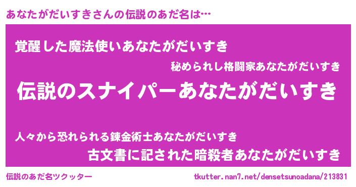 | ファンタジー風あだ名 | 『カークアナラー』『ユリアナヴァット』 |