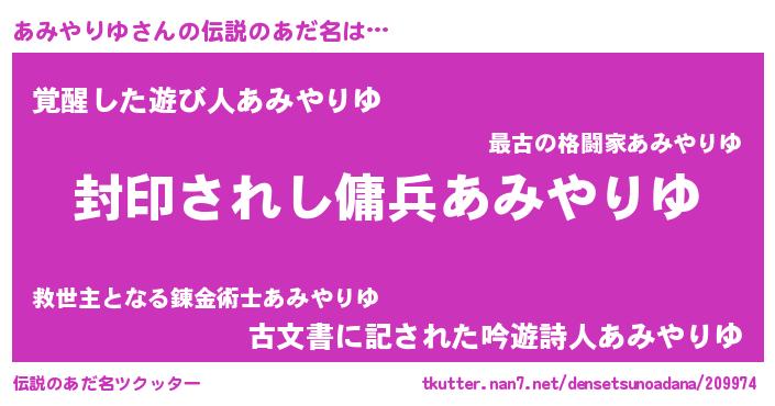 | 胡散臭い通販商品みたいなあだ名 | 『億万長者になれる水晶球…その名も「あみやりゆ」』 |