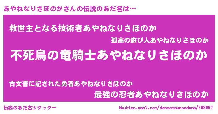 | ヒーロー風カッコイイあだ名 | 『サイバー戦士アヤネナリサホノカ』 |