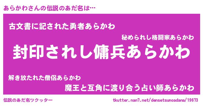 | ヘコむあだ名 | 『あらにゅー』『あらかわ(笑)』 |