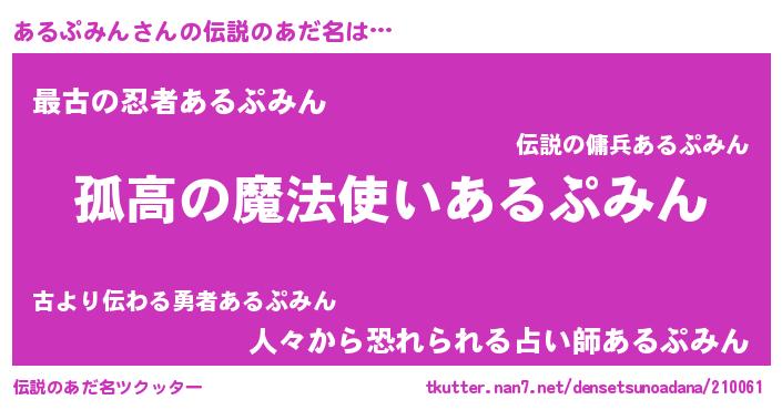 | 胡散臭い通販商品みたいなあだ名 | 『信頼と実績のサプリメント…その名も「あるぷみん」』 |