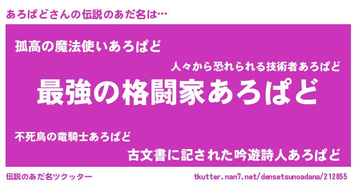| 胡散臭い通販商品みたいなあだ名 | 『あなたにだけ特別に提供する100年もののヴィンテージワイン…その名も「あろぱど」』 |