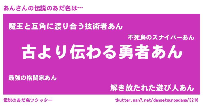 | 意味不明あだ名 | 『自称あん』『永久保存あん』 |