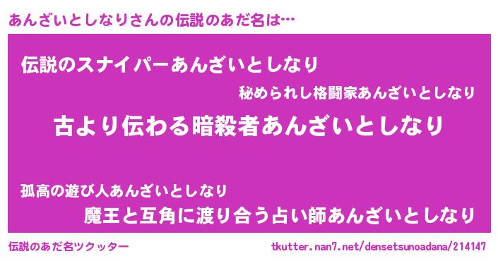 | 胡散臭い通販商品みたいなあだ名 | 『来世でも幸せになれる健康食品…その名も「あんざいとしなり」』 |