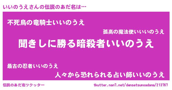 | 意味不明あだ名 | 『永久保存いいのうえ』『自称いいのうえ』 |